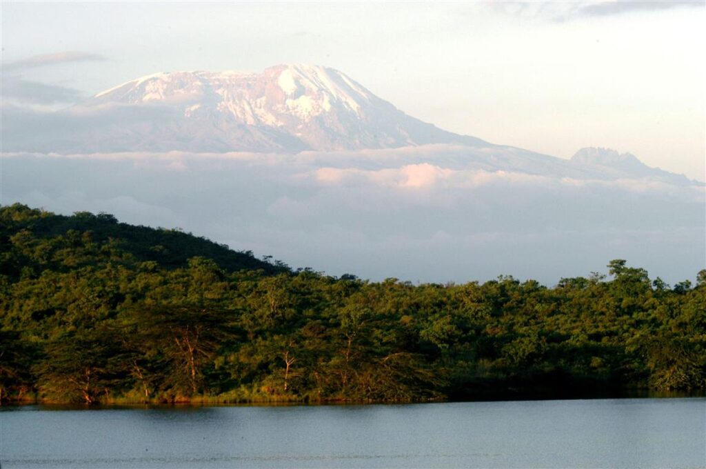 With an area of 137 sq. km, Arusha National Park is one of the smaller and most beautiful National Parks in Tanzania. Situated only 37 km from Arusha town, the park is very popular for day trips. The Ngurdoto Crater, Momela Lakes, the highland montane forest, and the rugged Mount Meru (4575 m above sea level) are the four distinctive features of the park. Mt. Kilimanjaro, towering at 5895 m to the east, can be visible on clear days from many locations in the park. One of the unique attractions of the park is the opportunity to combine game drives and a nature walk in the many places where visitors can leave their safari vehicles and walk in the fresh air.