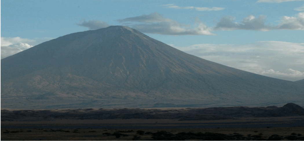 Ol Doinyo Lengai (2890 metres) is located some 240 kilometres to the northwest of Arusha town, along the western escarpment of the Great Rift Valley, overlooking Lake Natron on the border with Kenya. Ol Doinyo Lengai, or Mountain of God in Maasai, is the only active volcano in Tanzania.